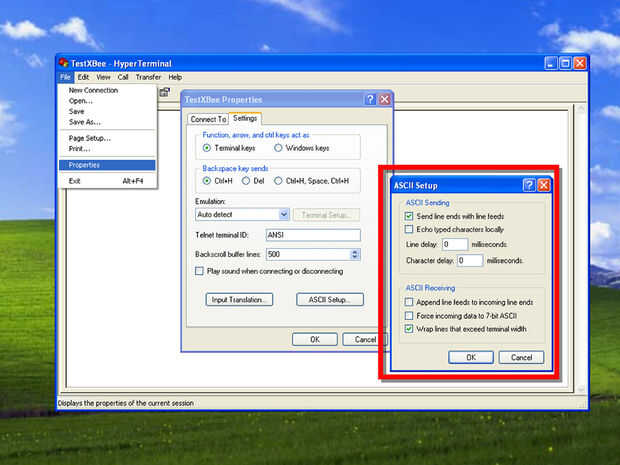 Hay un paso más antes de que podemos empezar a utilizar Hyperterminal para configurar el módulo XBee.
