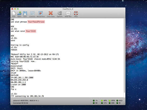 Instalar CoolTerm para MacOS. He encontrado que es mucho más fácil de usar CoolTerm, programa de terminal a Terminal de la bobina que viene con el MacOS. Pero si está familiarizado con la Terminal de la bobina se puede utilizar. Para aquellos que quieren utilizar CoolTerm ver detalles en el paso 9 - instalación de CoolTern para MacOS. (Figura 6-11)