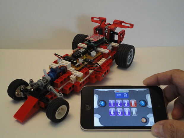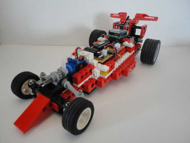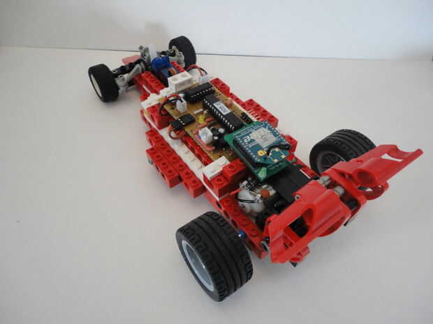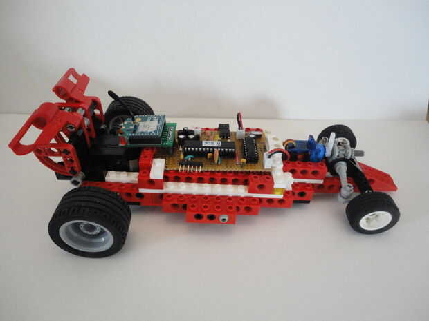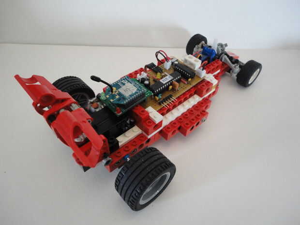 A continuación se muestran algunas fotos de coche de carreras Lego acabado y video muestra la prueba de banco de coche de carreras de Lego con el módulo XBee.