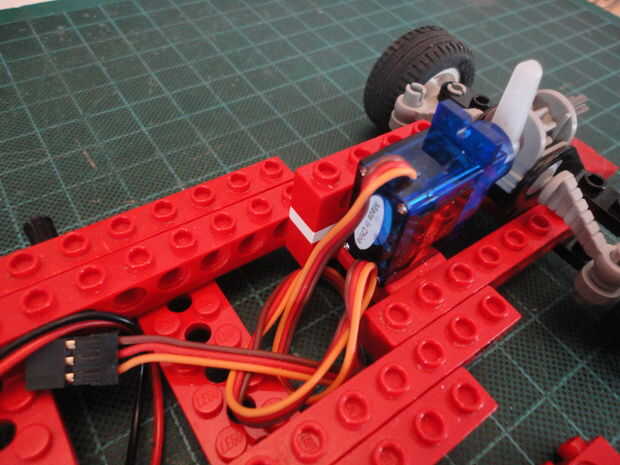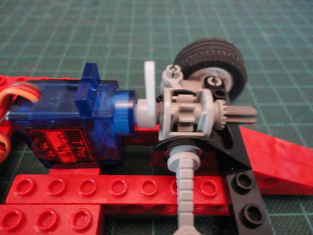 Se refieren a R/C de coches Lego paso 3: sistema de dirección y de R/C coche de Lego paso 4: Servo para el sistema y cómo modificar la Dirección servo según lo utilizado en este proyecto.