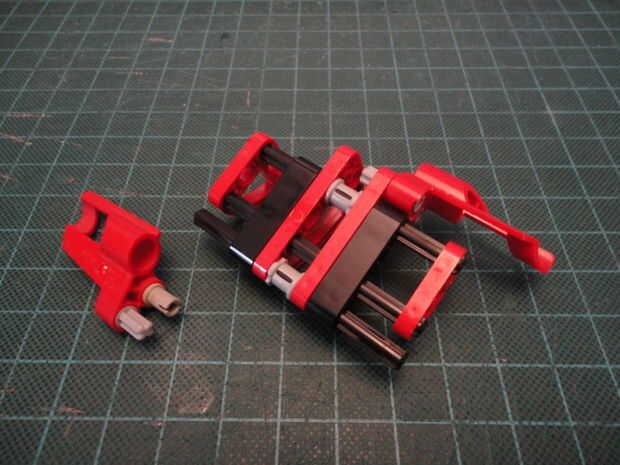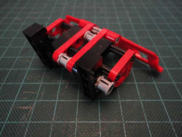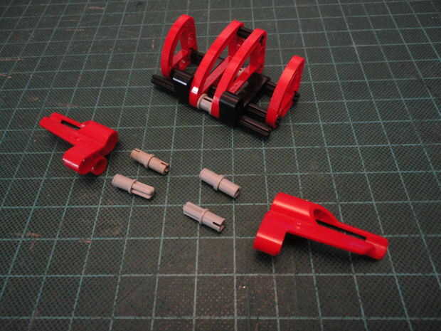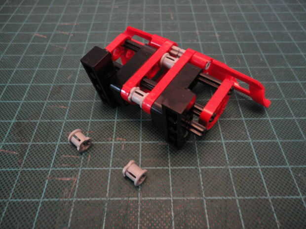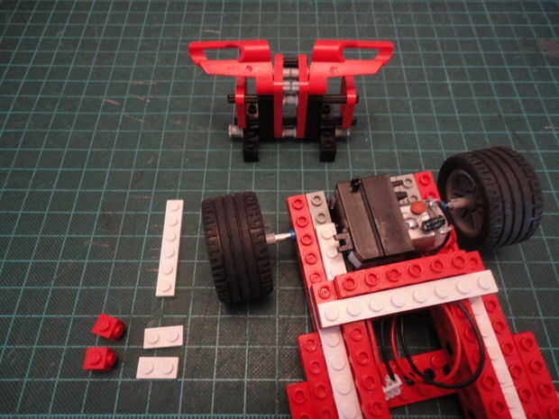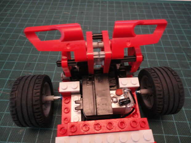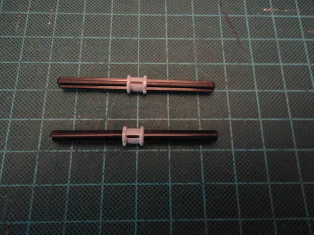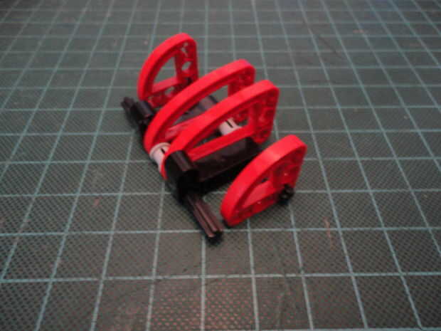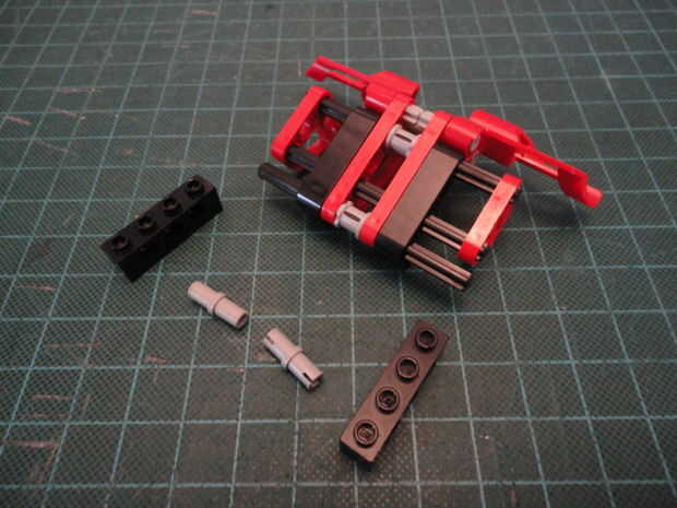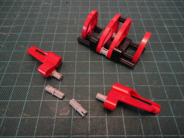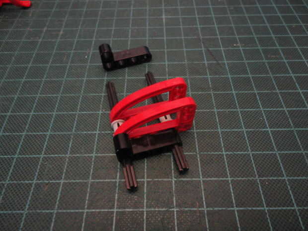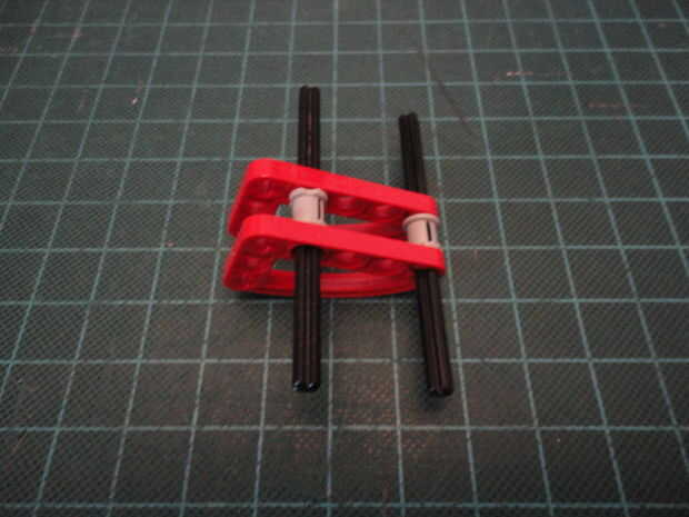 Foto 4. Inserte dos Liftarm forma de L de 2 x 4 (#32140) a Cruz de eje como se muestra en ambos lados.