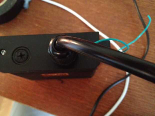 Monte el receptor dentro de la caja Asegúrese de taladrar un agujero de 1/8" para el cable verde. Es mejor que este cable fuera de la caja para tener la mejor recepción posible.