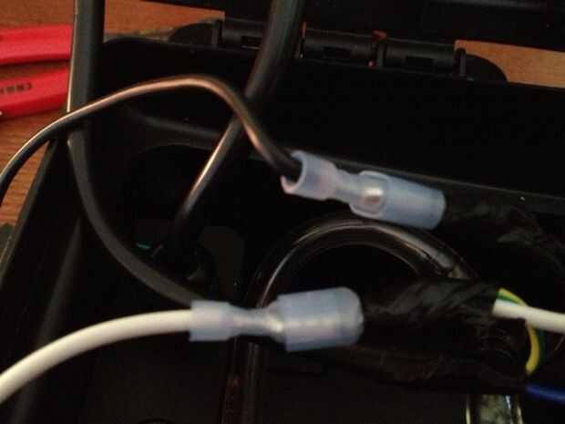 Conecte el conductor blanco de la batería a la mujer rápido Conecte que contiene el cable amarillo/verde y el cable blanco.