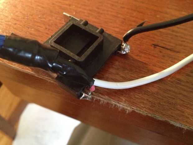 Retire el adaptador de batería de los taladros provenientes de la batería y usarlo para conectar los cables a. Resoldered los cables al puerto batería para hacerlos más resistentes. En el extremo opuesto de los cables, añadir que hombre rápido conecta de modo que puede conectar fácilmente con el resto de la instalación.