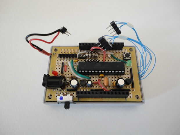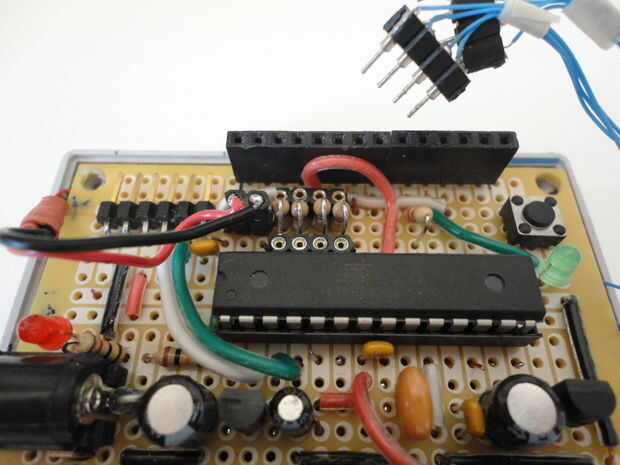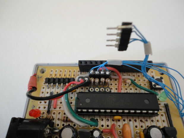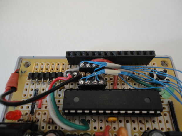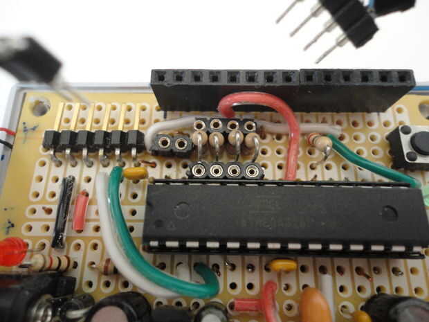 A continuación soldadas las dos cabeceras femenino y cuatro resistencias de 10K a PCB según el esquema en el cuadro 5 a continuación.