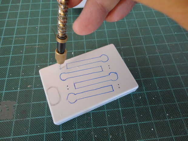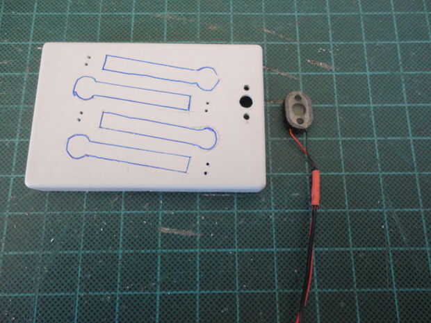 Y taladrar los agujeros para el altavoz que raspa fuera roto MP3 player. E instalado el altavoz en su sitio.