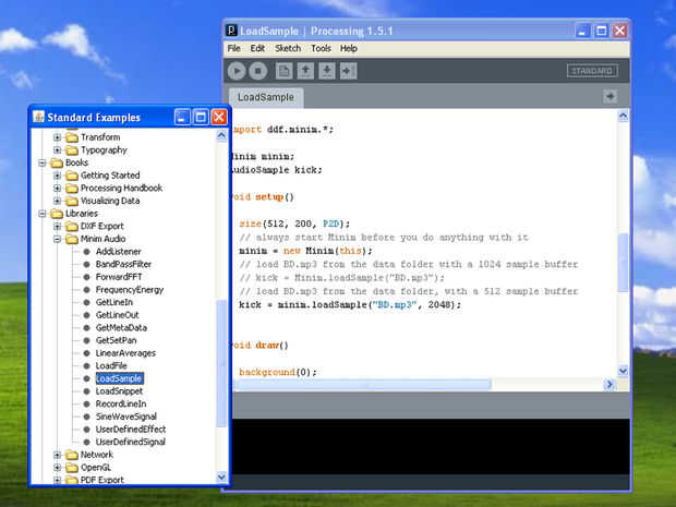Para obtener más información sobre biblioteca mínima, visita Processing.org o navegar a través de las discusiones del Foro de procesamiento en Minim aquí.