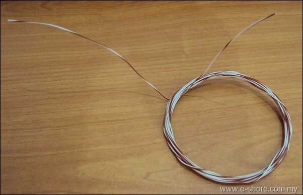 La parte principal de la red Wireless es la bobina de alambre. Estoy usando pequeñas (no sé el tamaño exacto) cable multinúcleo y hecho en el tamaño de unos 10 cm de diámetro, vuelta 15 (número de vuelta, simplemente elegir 15, sin ninguna razón especial, deja comentario si tienes alguna idea de cómo el número de turno afectan el sistema de alimentación inalámbrico). Se necesita dos bobinas exactamente iguales (uno para el diodo de la jarra, uno para conectarse a UMK8), su como un transmisor y un receptor.