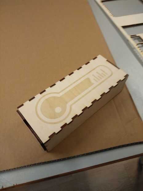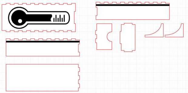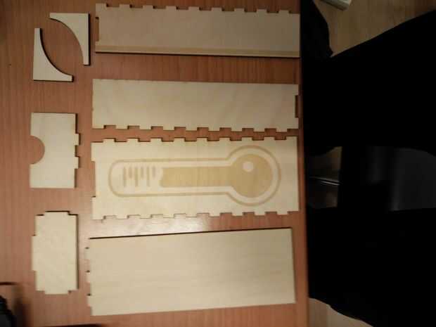 Cada parte fue diseñado en Adobe Illustrator y corte y grabado con un cortador láser. También había grabado un termómetro en la parte superior para un efecto visual agradable.