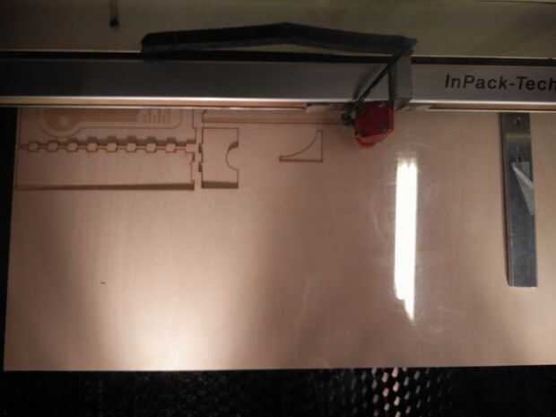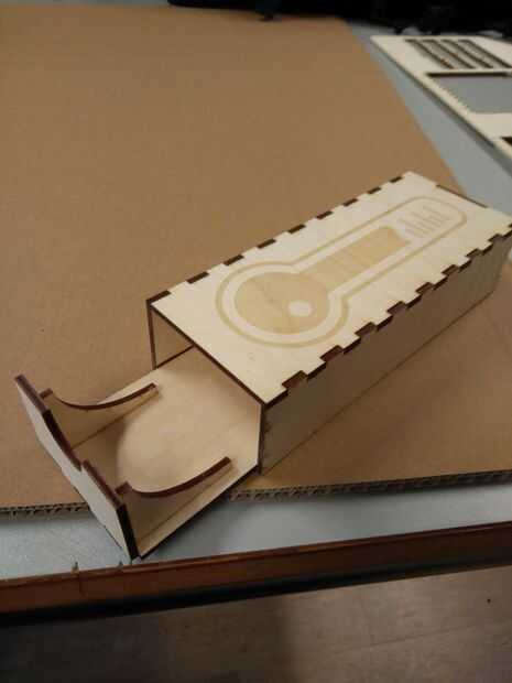 Observe la raya negra en la foto de arriba: esto fue grabado con el fin de poner en el cajón. Sin embargo el grabado con el cortador del laser no cortarlo (jeje), tuve que profundizar en el grabado con un archivo, en orden para el cajón caber.