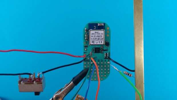 - La soldadura de la pata de tierra entre la resistencia de 1 k ohm y el pin 5 (se muestra aquí como el cable amarillo).
