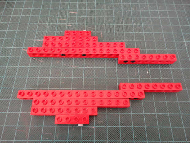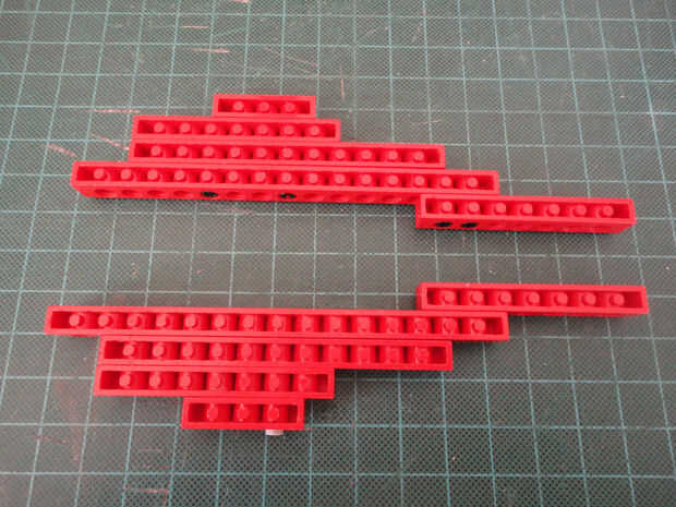 Foto 2, 3, 4 Cuatro conector clavija 3M (#32556) y dos de 1 x 12 técnica de ladrillo (#3895)