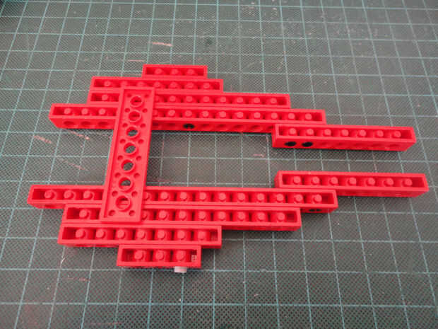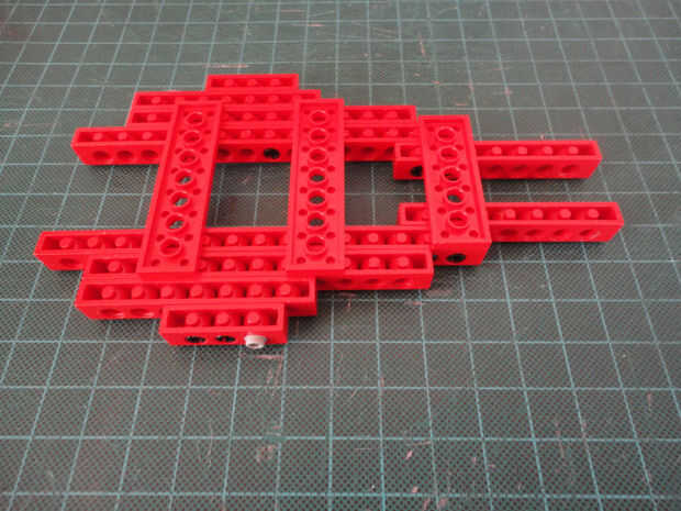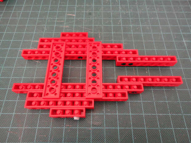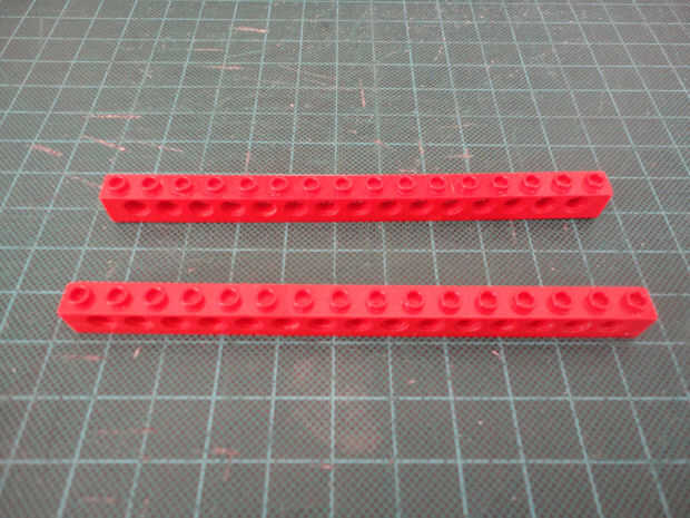 Foto 11, 12, 13, 14 Cuatro conector Peg (#3673) y dos 1 x 8 técnica ladrillo (#3702)