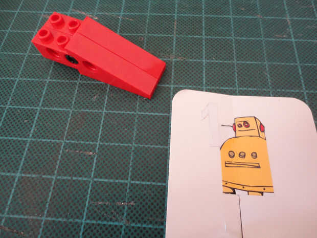 Foto 20 Retire el número 1 de almohadilla engomada y coloque sobre la inclinación. A continuación, retire el robot de la almohadilla engomada y coloque el robot en la parte superior el número uno como se muestra.