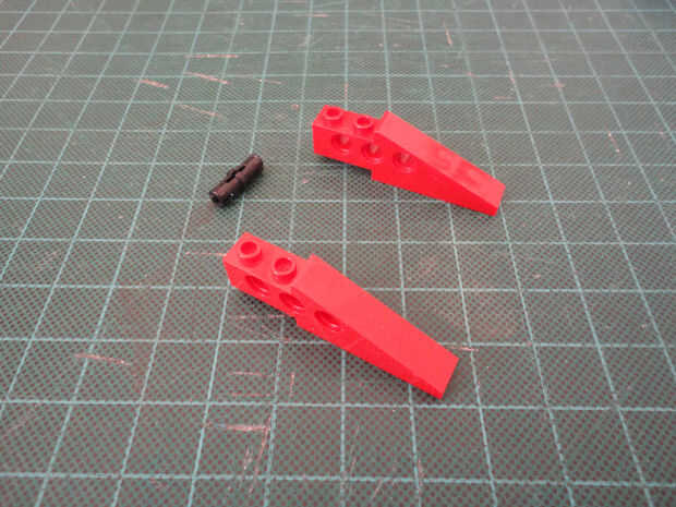 Foto 14, 15, 16 Conector clavija con fricción (#2780) y dos inclinadas ladrillos 1 x 6 (#2744)