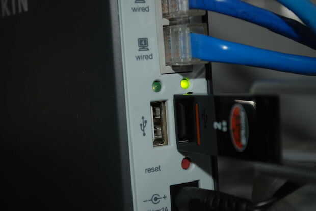 Enchufe la unidad de salto en el ordenador y transferir todos los medios de comunicación (música, películas, fotos, etc.) que desee. Una vez hecho esto, desconecte del ordenador y conectarlo al router. Mi router tiene un LED en la parte posterior. Se iluminará una vez que la unidad está lista para ser compartida.