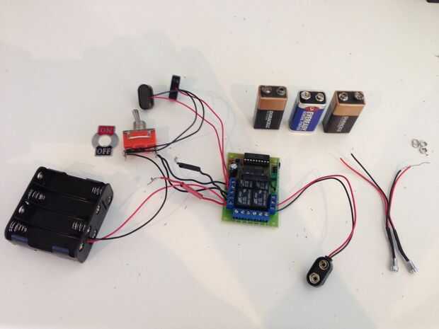 Ahora debe tener un circuito de funcionamiento una vez conectando las baterías. La manera de probarlo es a poner las pilas en, gire el interruptor a la posición "on" y presione cada uno de los botones del transmisor que viene con el receptor de RF. Un canal debe activar el rojo "armados" led tiene corriente a los cables de disparo - salir de su multímetro y ver a qué tipo de voltaje que está recibiendo - debe ser entre 10 v y 12 v y si sus nada menos tenga un corto en el circuito.