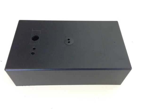 Marcar una línea que usará como referencia en linea con los dos LED y encima. Perfore un agujero grande bastante para que el bisel del LED se ajusta a través de él pero el labio de la luneta detiene el LED caerse. Repita para el segundo LED. Perfore un agujero lo suficientemente grande para el interruptor a. Taladro dos agujeros más pequeños en el centro de la caja para su encendido conduce a provenir y hacer un agujero más pequeño para la antena de RF empujar hacia fuera.