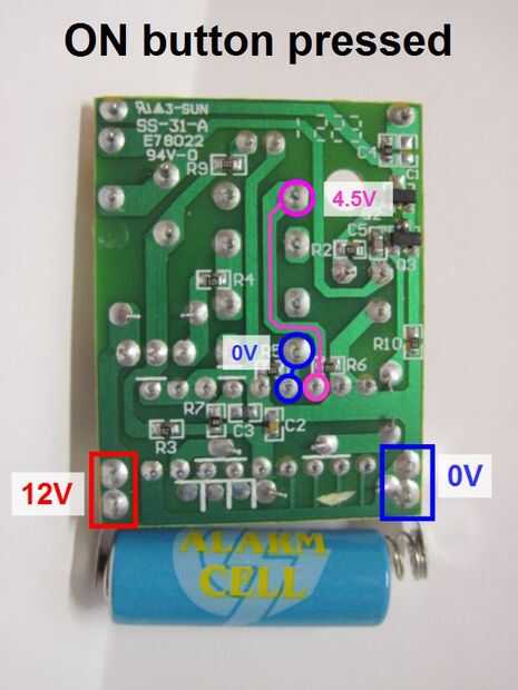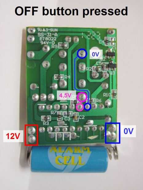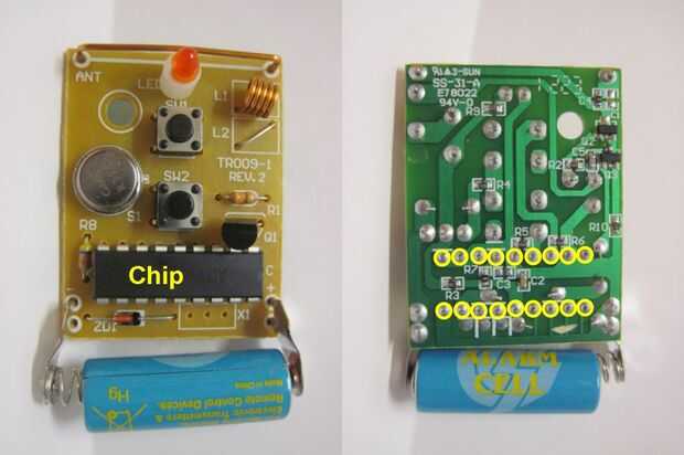 Ahora, vamos a referencias cruzadas de esto con nuestro análisis de los voltajes de pin (en los botones) en el paso anterior, para saber qué pasa con los voltajes de pines en el chip cuando se pulsen los botones. Las últimas tres imágenes de arriba muestran esto. Parece que ambos pasadores sentarse a 0V por defecto. Cuando se presiona el botón de encendido, uno de ellos va a 4.5V. Cuando se presiona el botón de apagado, el otro va hasta 4.5V. Esto confirma nuestra sospecha de que el circuito tiene probablemente un chip funcionando a niveles de lógica de 5V. Ahora podemos pasar a la construcción de un circuito que se engaña el mando a distancia para que piensen que se pulsen los botones, enviando 5V señales a estos pines.