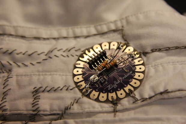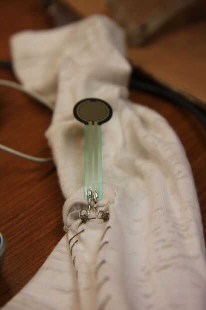 También necesitamos soldar una resistencia de 15K (para cada sensor) la + lado de LilyPad a un pin de entrada analógico. Para este proyecto utilizamos pines de entrada analógica 0 y 2, por lo que necesita un resistor de 15K de + -> a0 y el otro resistor de 15 K de + -> a2