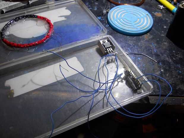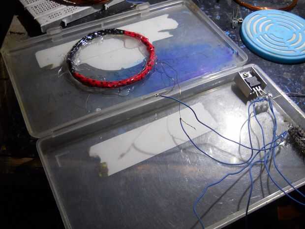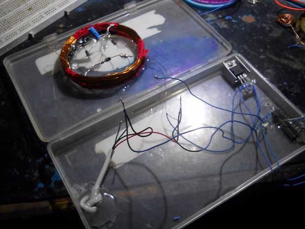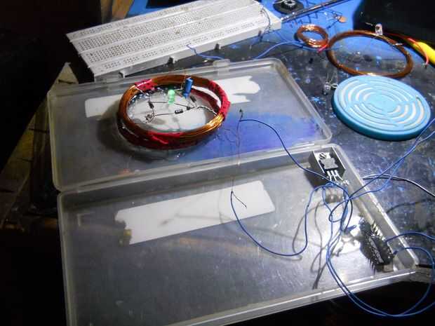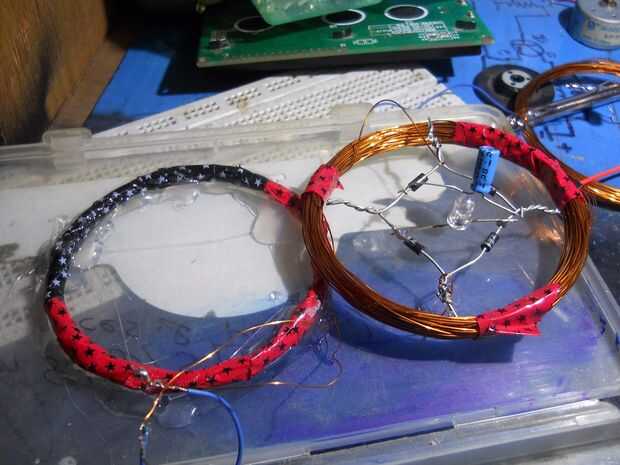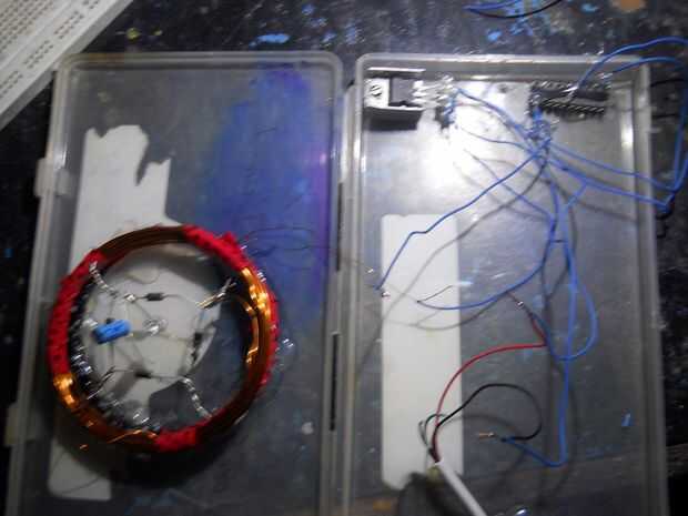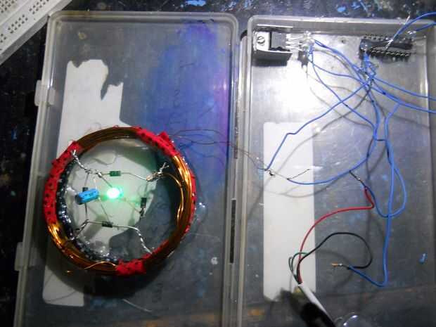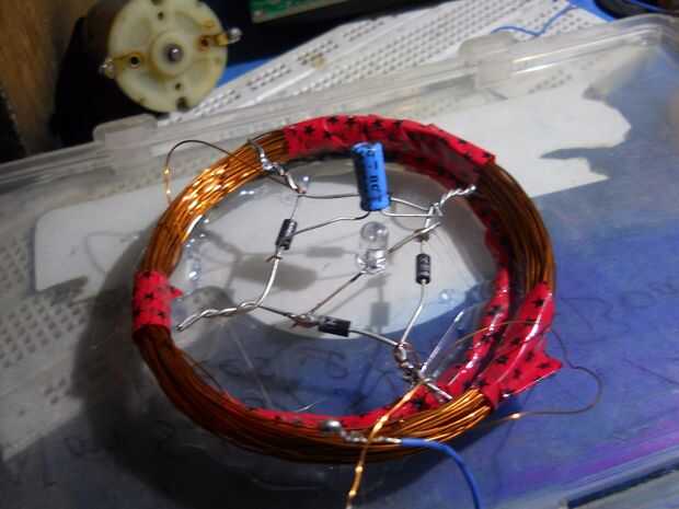 Hacer una bobina de 35 vueltas... conectar el puente más recifier y condujo (o terminales de salida) y el condensador...