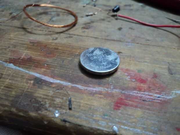Toma el golpecito de la bobina del transmisor y conecte al extremo positivo de la batería. Conecte el extremo negativo de la batería en el emisor del transistor. Ahora si trae bobina receptor con L.E.D cerca del transmisor, el L.E.D se ilumina! Este parece ser el sueño!