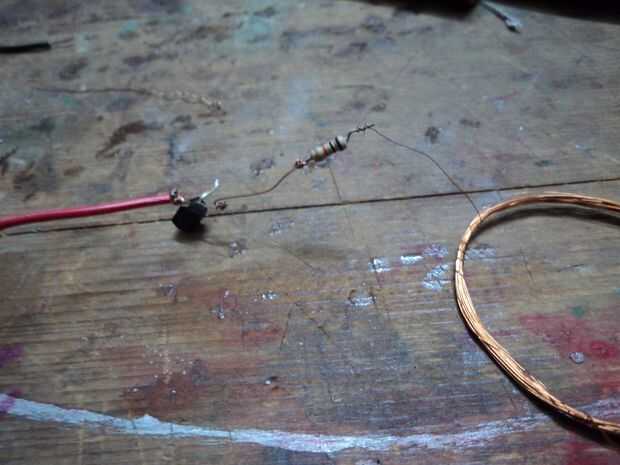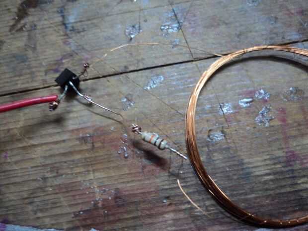 Tomar el transistor y coloque el lado plano quede hacia arriba y los cables son hacia usted. El cable de la izquierda es el emisor, el plomo en el medio es la Base, y el liderazgo en la derecha es el colector. Tomar la resistencia y conecte uno de sus extremos a la base del transistor. Tome el otro extremo de la resistencia y conectar uno de los extremos (no del grifo) de la bobina del transmisor. Tome el otro extremo de la bobina del transmisor y conecte al colector del transistor. Si desea puede conectarse un trozo pequeño de alambre el emisor del transistor (que funcionaría como una extensión de la Emitter.For más claridad por favor consulte el diagrama.