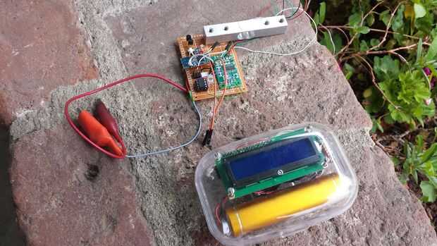 Esta escala es inalámbrico. Puede ser útil cuando no se puede utilizar una escala normal, debido al clima exterior, o si no quieres espantar a los pájaros u otras criaturas. Con esta escala se puede pesar. En este instructable, usé una célula de carga de 0 a 1 Kg ya que quería pesar colibríes y los orioles que visitaron nuestro alimentador de néctar. Uno de los extremos de la célula de carga se adjunta a los aleros, y el otro extremo tiene un gancho del que cuelga la cadena de apoyo para el alimentador. Muchas otras células de carga están disponibles en rangos de peso diferentes, y todos ellos se pueden enganchar para arriba de la misma manera, la única diferencia es el cero factor factor y gama que se puede cambiar en el sketch de Arduino.