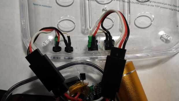 Cuidadosamente y taladro 4 agujeros para el montaje de la pantalla lcd de la tapa del plato de jabón y conectar lcd a la tapa con 4 c 1/2" miniatura largo tuercas y tornillos correspondientes. Taladrar los orificios para el interruptor pulsador y mantener en su lugar temporalmente con masilla de terremoto en los lados de la palanca. Aplique 30 minutos escasamente superior e inferior de la palanca y deje curar. Lo mismo para los 2 botones. Cables según el diagrama del circuito.