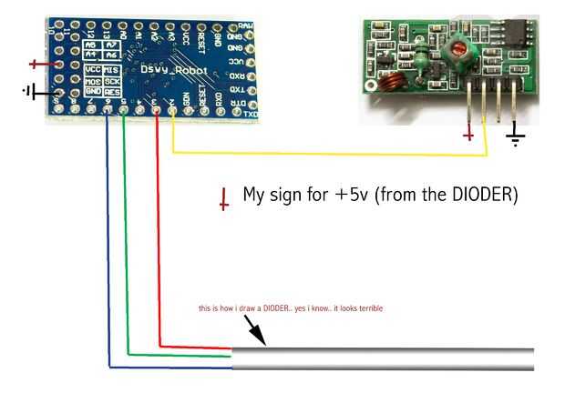 Primero de soldadura todo un ingenio de alambre una longitud de 17,3 cm al receptor 433 Mhz si no vas a conseguir algunos resultados extraños, este funciones de cable de antena con la longitud de 1/4 onda.
