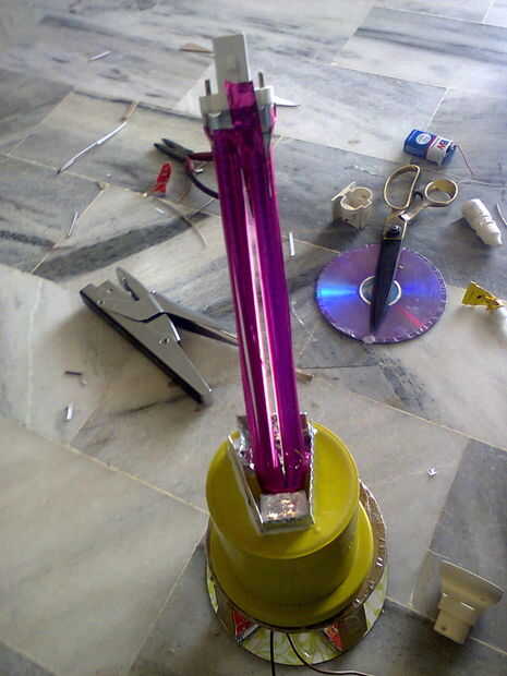 mi lámpara de noche color morado inalámbrica trabaja básicamente en mini bobina de tesla [circuito excitador de macizo salyer bobina].