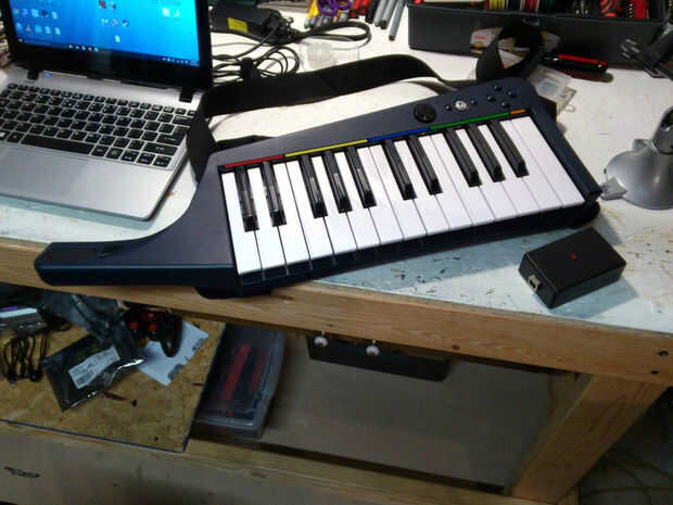- Controlador Keytar Rock Band (el mío es para Wii, pero PS y XBox son similares y posiblemente funcione también)