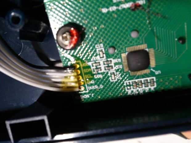 Vamos a utilizar las líneas VDD1 y GND que el sensor de contacto para alimentar nuestro circuito - podemos llegar a ellos fácilmente sin desarmar el regulador de todo (aunque revisa el desmontaje en el apéndice si tienes curiosidad), y hay un espacio libre cerca de donde nosotros podemos pegar el XBee. Recorta mis puntas de prueba de multímetro en estos cables y parecen llevar una agradable, constante de 3, 3V no importa lo hagas en el keytar. Esto puede afectar la gama de lo XBee un poco, pero ya que la energía es proporcionada por 3 AA (3 × 1, 5V = 4, 5V max), es mi suposición que todo dentro del controlador se ejecuta en un 3.3V regulado para que la tensión permanece constante. Por lo tanto, que es probablemente como bien como vamos a llegar, pero bueno, baja potencia es el nuevo algo algo.