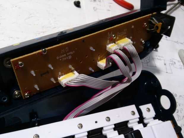 Retire todos los tornillos en la parte posterior de la caja del controlador. Hay cuatro que son más cortos que los otros que en la parte posterior de la keybed - hacer un seguimiento de estos y donde van. Voltee el regulador, separar las dos mitades de la caja un poquito, a continuación, deslice la parte superior la mitad adelante y alrededor de la parte delantera de las teclas, luego gírela hacia atrás y cubierta todo abierto como se muestra en la imagen.