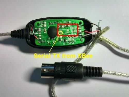 Hay un montón de barato (~ $6) interfaz de MIDI a USB cables flotando por ahí que parecen que falta algunos componentes importantes en el lado de MIDI - particularmente el optoacoplador que utilizamos en nuestro circuito de entrada MIDI. Puede ver su silueta en la serigrafía en las imágenes de dos ejemplo. Quién sabe por qué no es, tal vez todavía funcionan a veces. Lo que funciona (y probablemente oculta bajo esa gota negra) es la interfaz MIDI USB compatible con la clase. Sólo enviamos los datos en serie que salen de lo XBee en esto, y cuando conecte a un ordenador, aparecerá como un dispositivo MIDI. También te enviaremos a la serie de datos a un circuito de salida MIDI para que podamos usar dispositivos heredados en el conector 5-pin - no dude de omitir esto si usted ha decidido DIN está muerto.