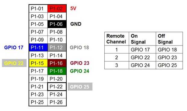 4. Conecte los pines GPIO de la Raspberry Pi (17, 18, 22, 23, 24 y 25) a las puertas (pin izquierdo al frente el lado con la escritura) de los MOSFETs respectivos como se muestra. Ver la tabla con códigos de colores, que coincide con los colores de los cables que utiliza en los diagramas de la protoboard, para ayuda realizar un seguimiento de todo. Consulte esta página para obtener más información acerca de los pines GPIO y el esquema de numeración (que puede ser confuso si usted es nuevo a Raspberry Pi, especialmente si estás acostumbrado a Arduino).