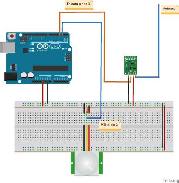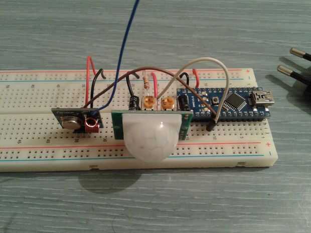Este es código del transmisor. Cuando el sensor PIR detecta movimiento humano transmisor envía letra mayúscula A. Cuando el sensor pir no tiene ningún transmisor de señal envía letra minúscula un.