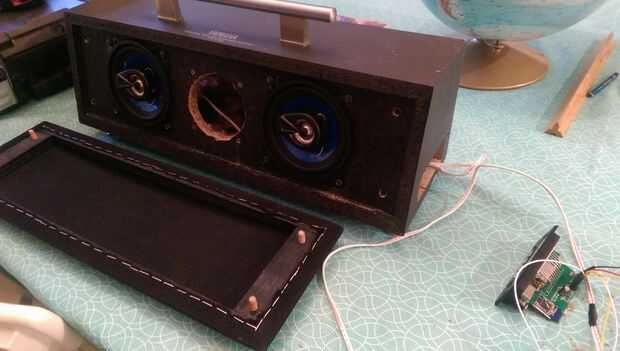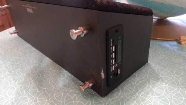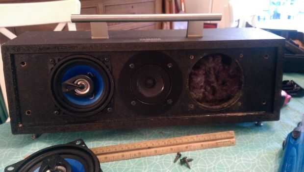 tuve un buen rato haciendo mi instuctable pasado así que pensé publicar éste así. Decidí usar al mismo tipo de amp de Módulo/mini mp3 decodificador como lo hice en mi último post con mi guitarra. Quedé bastante impresionado con el dispositivo. Tuve un altavoz viejo del canal del centro Yamaha que parecía que sería una buena caja de auge portable con algunas ideas más en mente. En primer lugar, que iba a ser portátil, necesita un mango. Por suerte pude mendigar uno encima de una puerta vieja que no se veía como si fuera de gabinete de cocina. Hizo más atractivo el aspecto general del mismo. En segundo lugar, pensé puede ser que necesite soportes o pies de algún tipo. Lo que inicialmente vino a la mente fue el altavoz de piso de alta gama 'puntillas'. No moleste mirando hacia arriba, pero me imagino que son más de lo que quiero gastar en sólo un divertido proyecto. Lo son realmente las cosas que ves en la parte superior de los elevadores que usan para colgar las mantas en proteger las paredes del ascensor. Así que hable con su mantenimiento si tienes uno. Incluso coinciden con el mango perfectamente. A continuación tomó dos baterías de mi antiguo celular y soldado en paralelo para hacer una batería duradera más larga (que puede ser cargada a través del módulo del decodificador). Utiliza cinta de dos caras para pegar en la parte inferior para no moverse. Entonces sólo conectado el módulo y abotonado todos:-). De hecho tengo algunas ideas más para lo que me extenderé en cuando tengo más tiempo. Sólo quería conseguirlo para ver cómo veía y sonaba. Si gusta o tienes alguna idea me avisan... :-)