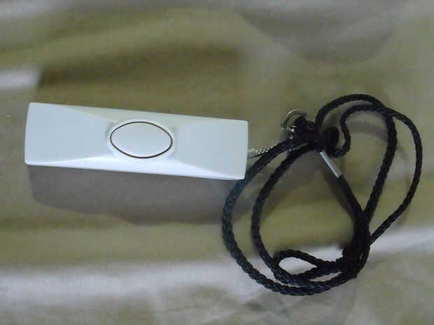 Y la persona con discapacidad llevan el botón con un cordón alrededor del cuello, y cuando alguna vez necesitan ayuda solo presione el botón y si estás al lado del timbre en cualquier parte de la casa se saben que la persona necesita ayuda
