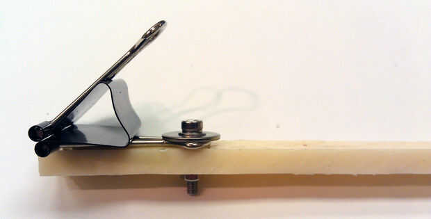 Perfore un pequeño agujero cerca del borde del bloque largo. Utilice el tornillo y arandela a un clip de papel. (imagen 20)
