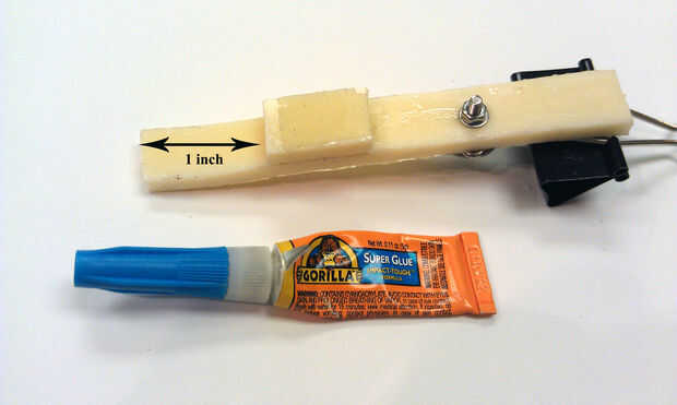Cortar un ¼" espesor, tablero de plástico de 1" X 0,5" y un ¼" gruesa, 4" X0.5" bloque de plástico. (imagen 19)