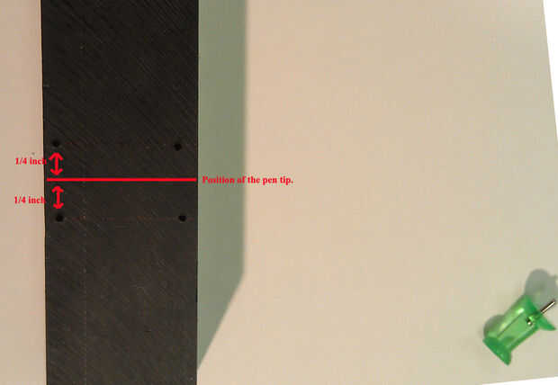 Utilice super pegamento para el ventilador en un pedazo de plástico (base tablero). Poner un trozo de plástico block (bloque de papel) cerca de la punta de la pluma y marque la posición de la punta hacia abajo. (cuadro 24)