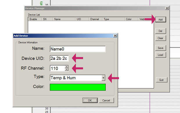 Step2 programa configuración dispositivo UID 2a2b2c RF Canal 110 temperatura y humedad