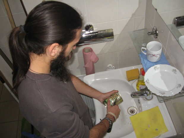 Consejo: lavar con agua tibia mientras se friega con un cuchillo o una lana de acero