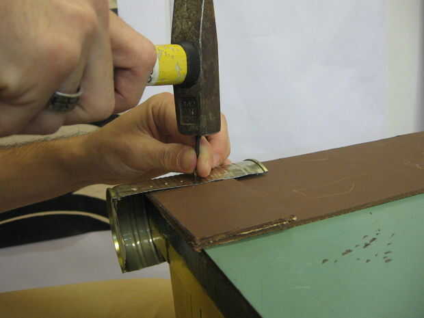 También en este paso, hacer un pequeño agujero en uno de los extremos de la lata. Este agujero tendrá su incienso para quemar.