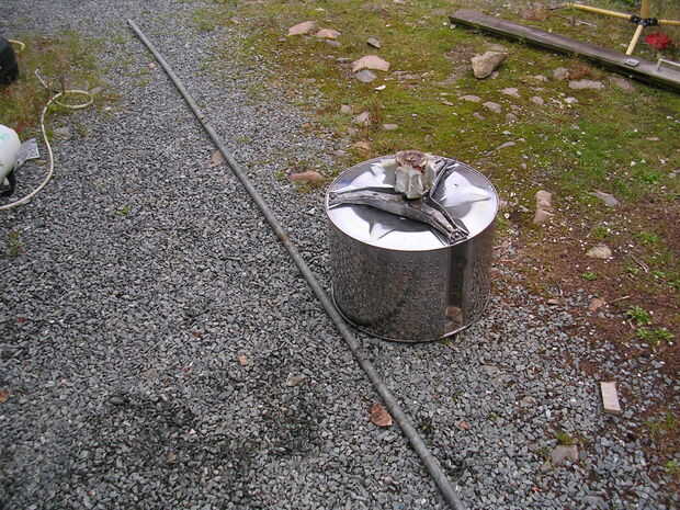 He utilizado un hacha de mano hackear crudamente el tambor libre forma el depósito de plástico se monta en, este fue mi rápida opción algo y deshacer sólo hacia muchos tornillos. desea ser cuidado como los dedos y ojos no vuelvan a crecer.