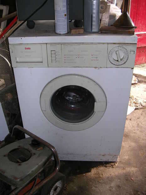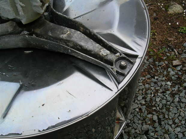 Destripado el tambor de acero inoxidable de una vieja lavadora que para chatarra.