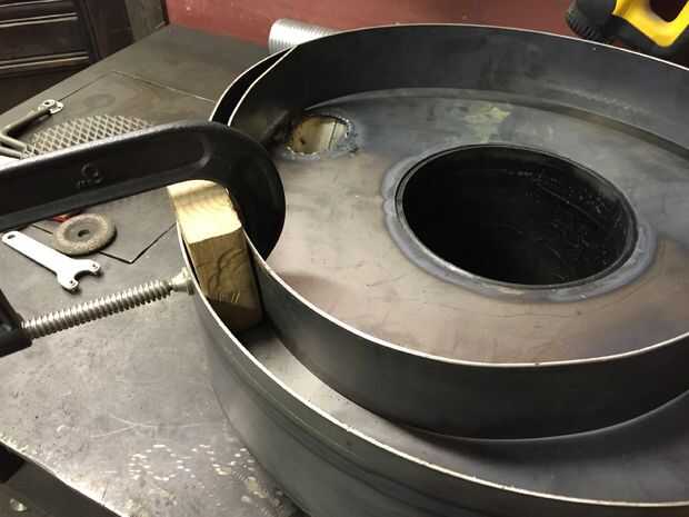 El objetivo aquí es hacer un surco que el borde del barril caben en. El anillo interior se hace de la acción plana de 3". Puesto que la pared exterior ya está en marcha, necesitará previamente su anillo interno de la bobina. Está bien ser descuidado, lo único importante es que cabe dentro de la pared exterior. Una vez en el lugar, virar el anillo a las afueras de un orificio de entrada. El grueso de la 2 x 4 es clase de ideal para separación de pinza así el interior del anillo a su bloque y virar como vas. Al acercarse el final, tienes algunas sobras igual que con la pared exterior. Marcar y recortar demasiado.
