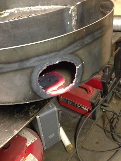 La Manguera flexible de Walker es donde comienza esta fiesta. Cortar un extremo de la manguera a 45 grados. El ángulo real es más pronunciado, pero mi Sierra encabeza a 45. Es importante colocar este tubo en la orientación correcta de los tubos hacia abajo. La posición correcta es en línea con las aberturas del tubo hacia abajo y después un tubo hacia abajo. Mantenga su entrada contra la tapa y márquelo. Tallar con un soplete abrir la tapa para hacer espacio para tu entrada. La entrada será acero inoxidable o galvanizado. Los humos que este metal no son buenos para usted y pondrá en peligro su soldadura si no tienes cuidado.
