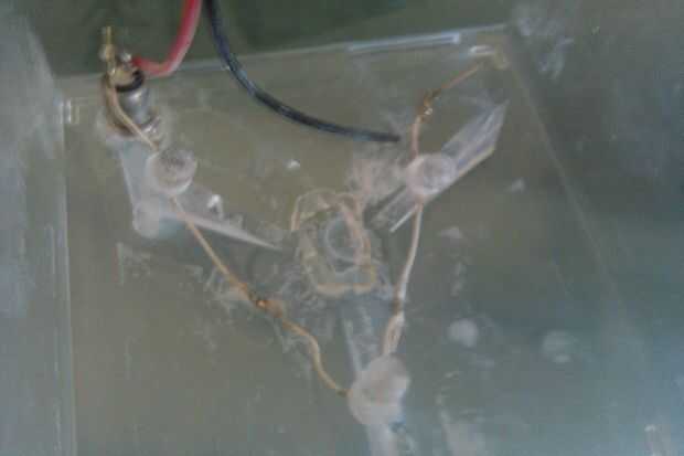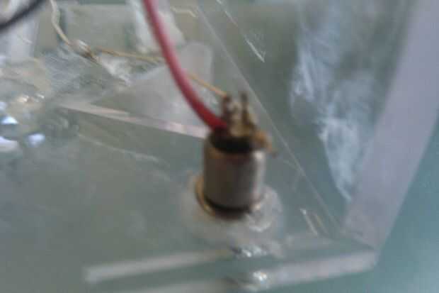 Necesitaba un agujero en la parte inferior del cubo para el momentáneo interruptor y encontró que el soldador hizo un trabajo ideal. Derritió el agujero al tamaño correcto y desliza el interruptor de. Cuando el plástico se enfría, el estaba seguro. La parte realmente interruptor sobresale lo suficiente de la parte inferior para ser presionado cuando el cubo se ajusta hacia abajo con un poco de presión.